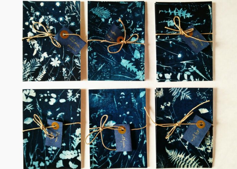 A la fin de chaque stage vous réalisez un tableau collectif. Pour la fête du cyanotype made in Poitiers, j’ai fait imprimer des cartes postales de vos travaux ! Celle…