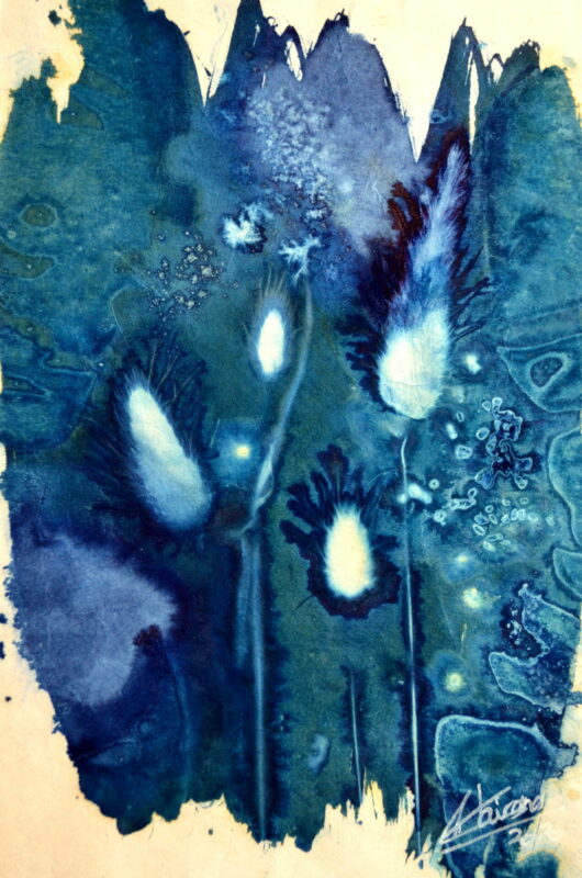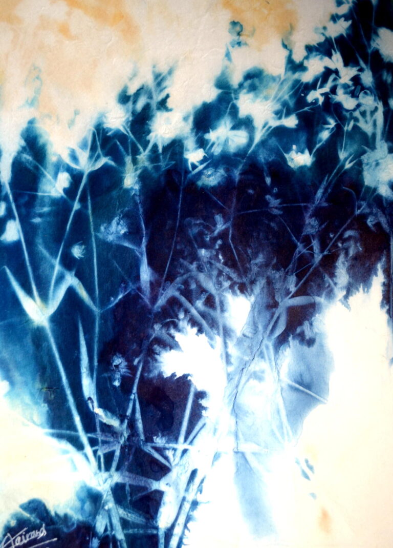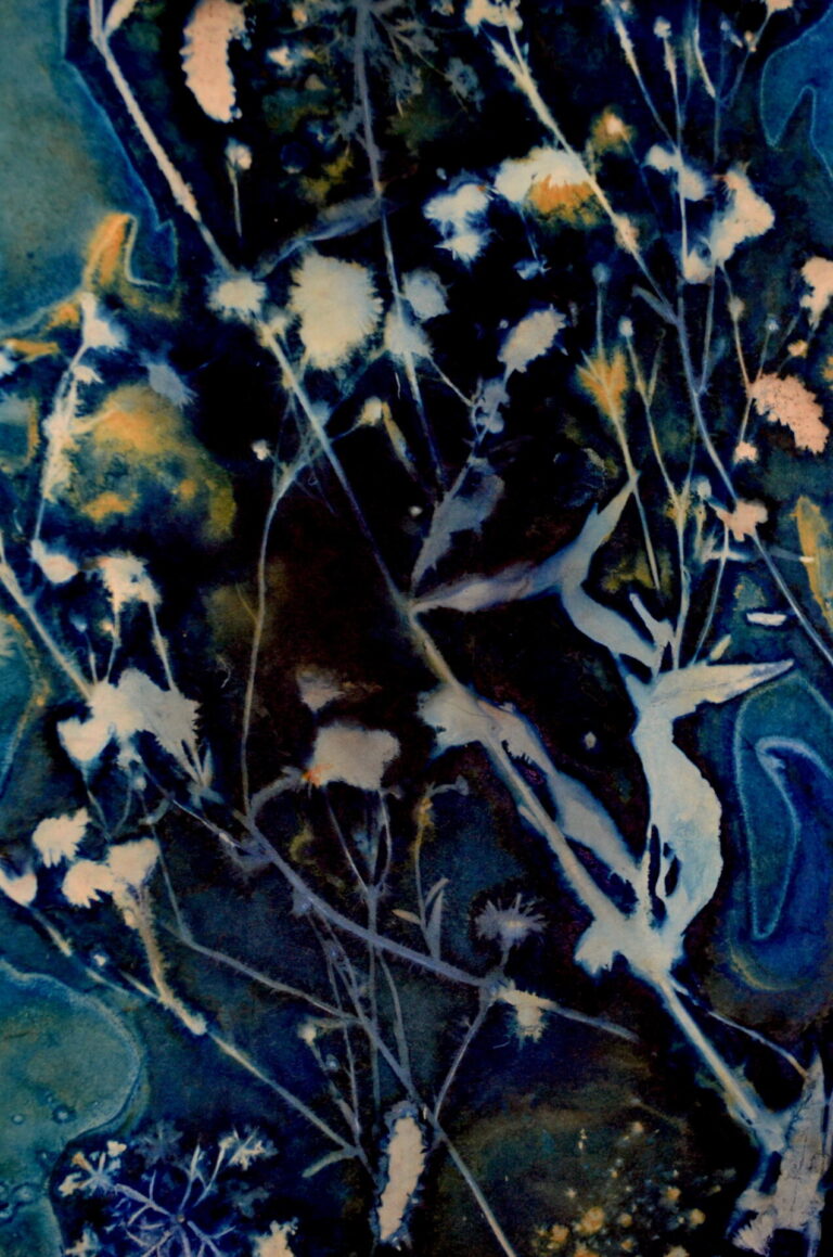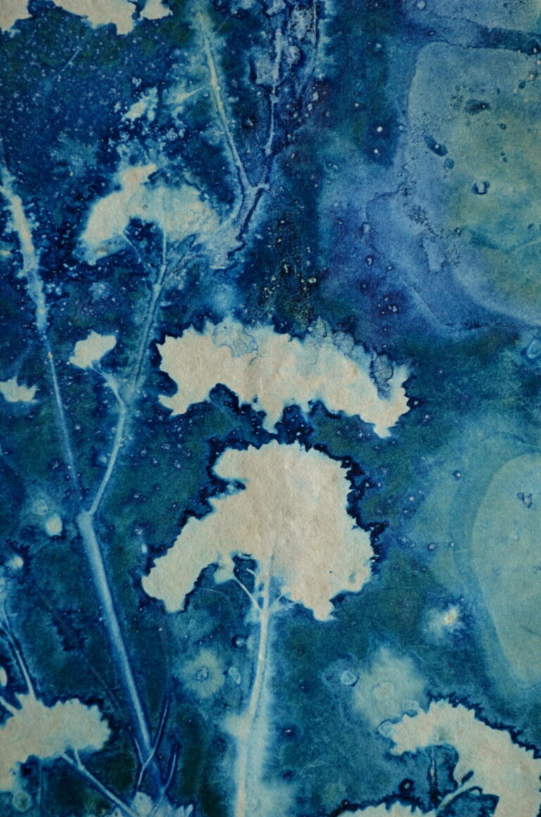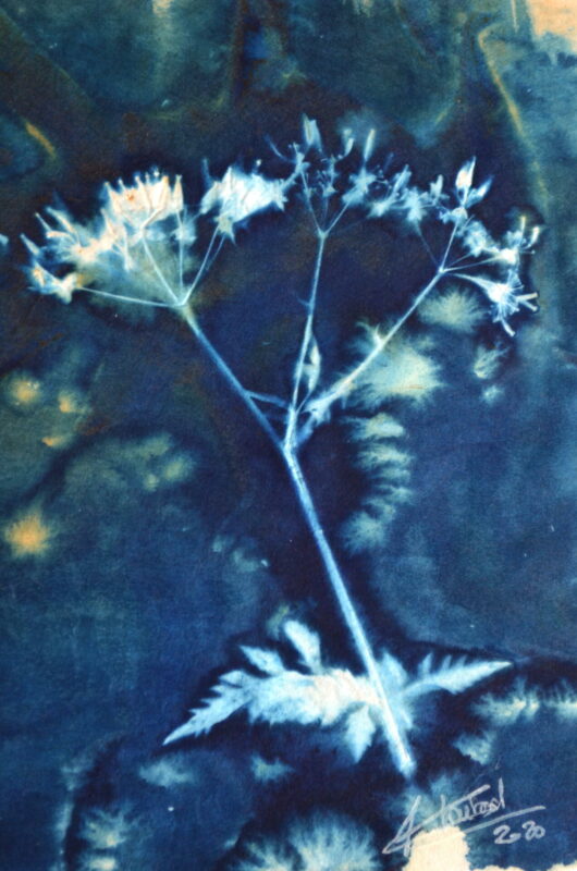 Le cyanotype naturaliste est mon médium d’expression artistique. Passionnée par le végétal depuis toujours, cette technique du cyanotype avec le végétal me donne accès à des portes de plus en plus profondes de mon intimité et de mon inconscient. Certains de ces cyanotypes sont également disponibles à la vente.