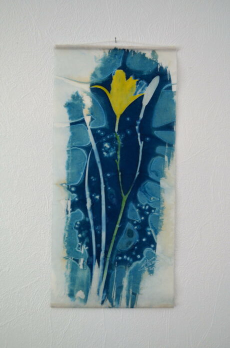 Cyanotype en kakemono aux feuilles de pavot