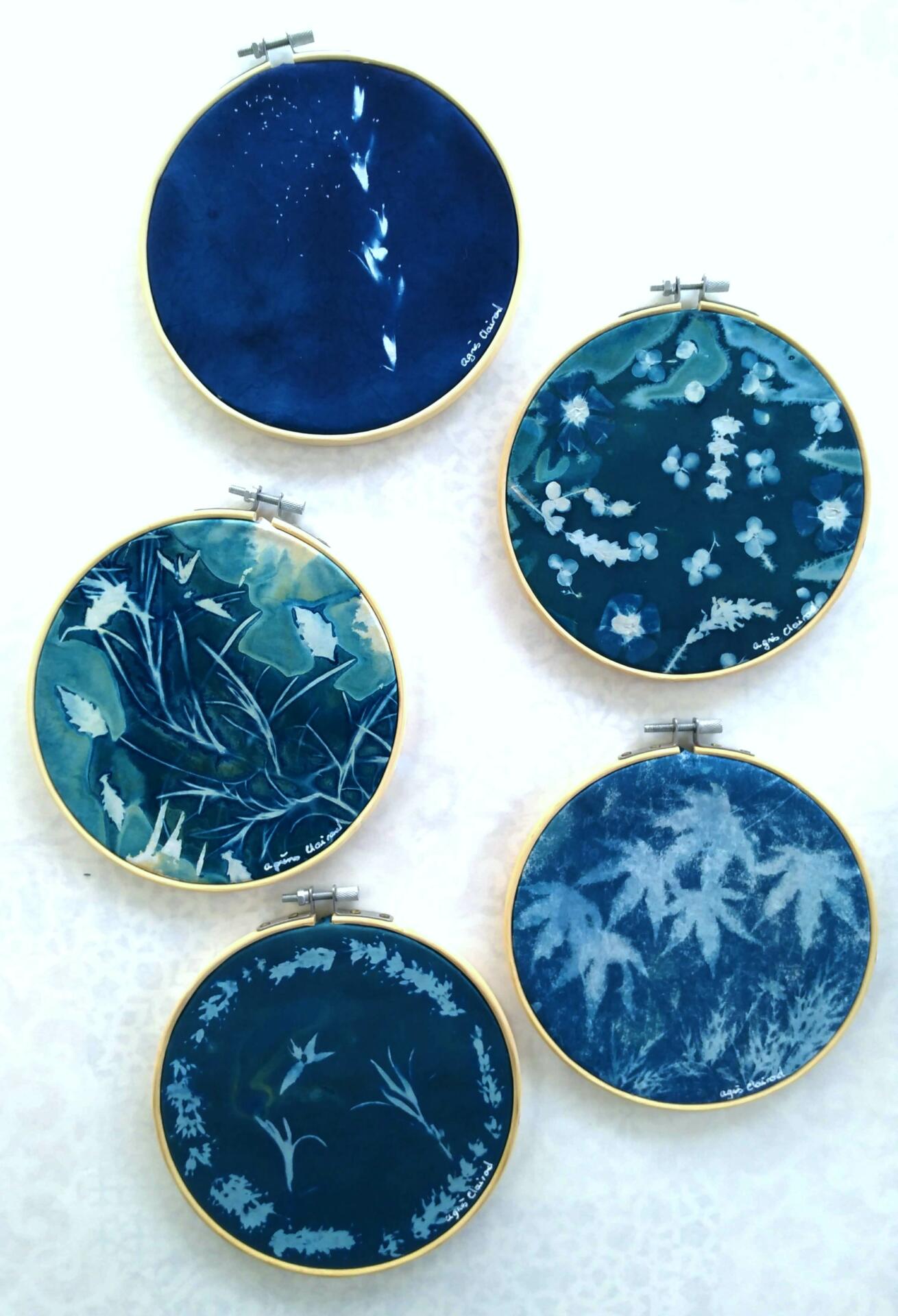 Dans mon jardin depuis deux ans les plantes médicinales et les fleurs comestibles se sont invitées. A la fin des vacances pour la première fois j’ai eu l’autorisation d’aller en cueillir pour réaliser des cyanotypes. Je les ai cueillies avec parcimonie et délicatesse pour réaliser ces bulles de bonheur porteuses de toutes les vertus médicinales des plantes ramassées. La Guimauve, la mauve, la rue, l’hélycryse, la lavande, achilée millefeuille distillent leur médecine pour vous, et vous trouverez la douceur des fleurs d’hortensia ou le monde étoilé de la carotte sauvage !