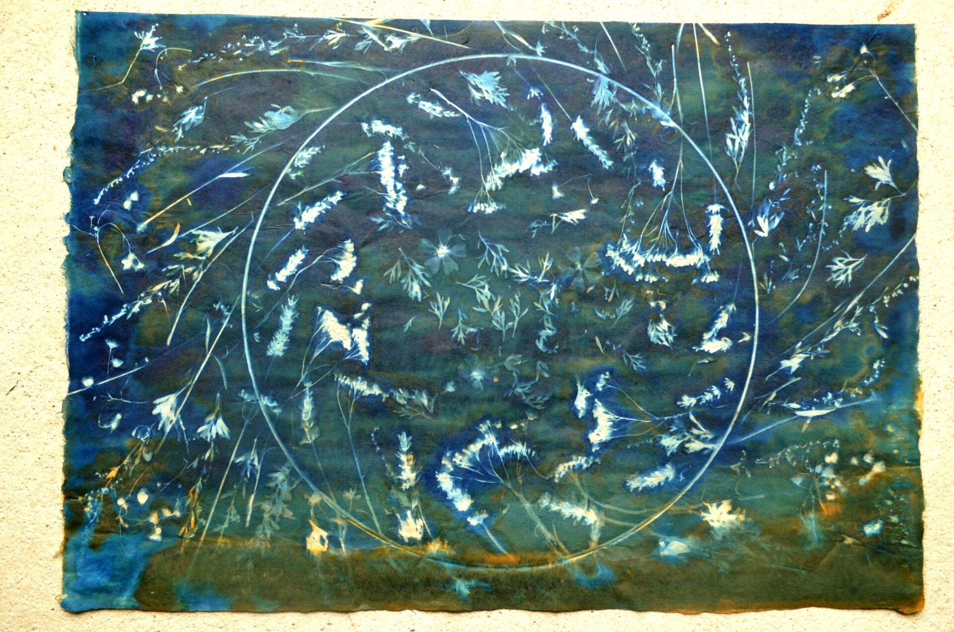 Le premier cyanotype avec des plantes médicinales lors de la nouvelle lune du 10 juillet.
