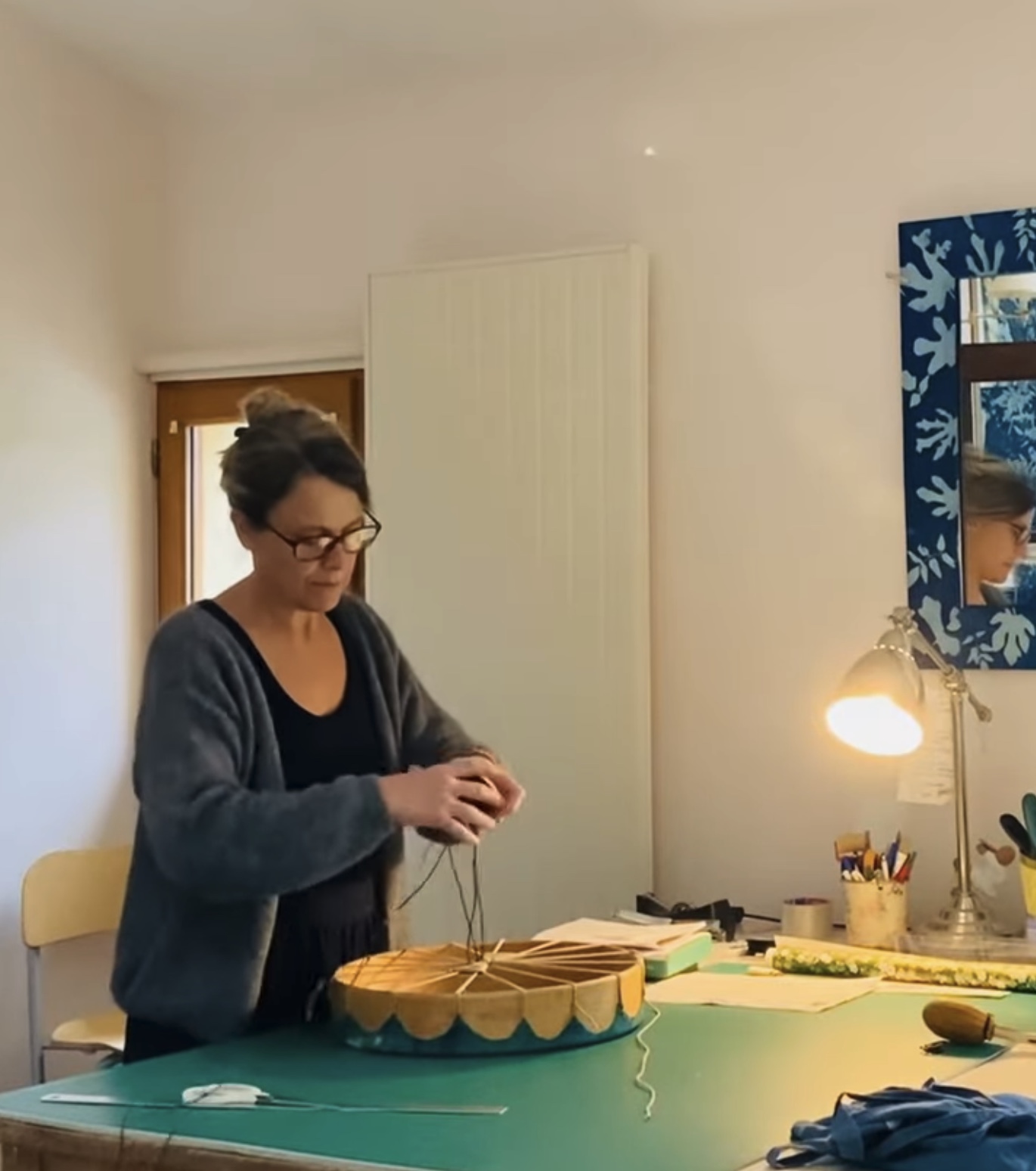 Les délais de fabrication sont variables, entre un mois à deux mois. Je ne décide pas quand je vais le fabriquer, la météo est un facteur important, ensuite je vais encore une fois me laisser appeler par l’énergie du moment, que ça soit les cycles de la lune, les changement de saisons, ou les fêtes religieuses par exemple. En sachant que je ne réalise pas de cyanotype de fin octobre à fin mars. La végétation est en hibernation, c’est aussi le temps pour moi de me régénérer. Les cadres et les peaux viennent de chez un ami lui-même fabriquant de tambours. Matthieu m’a accompagné lors de la fabrication de mon tambour. Les peaux sont essentiellement des peaux de chèvre. Je peux en changer si vous avez un souhait particulier. Les diamètres vont de 35 à 60 cm.