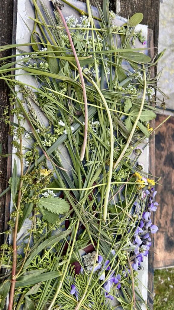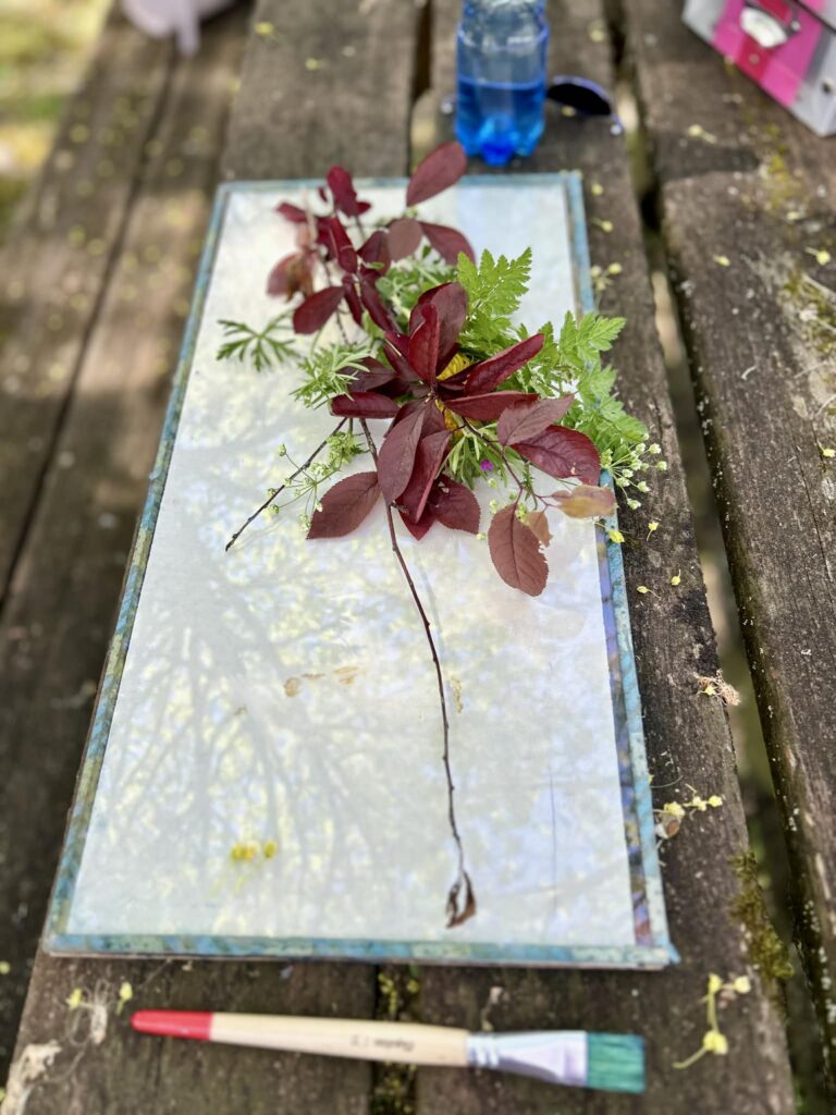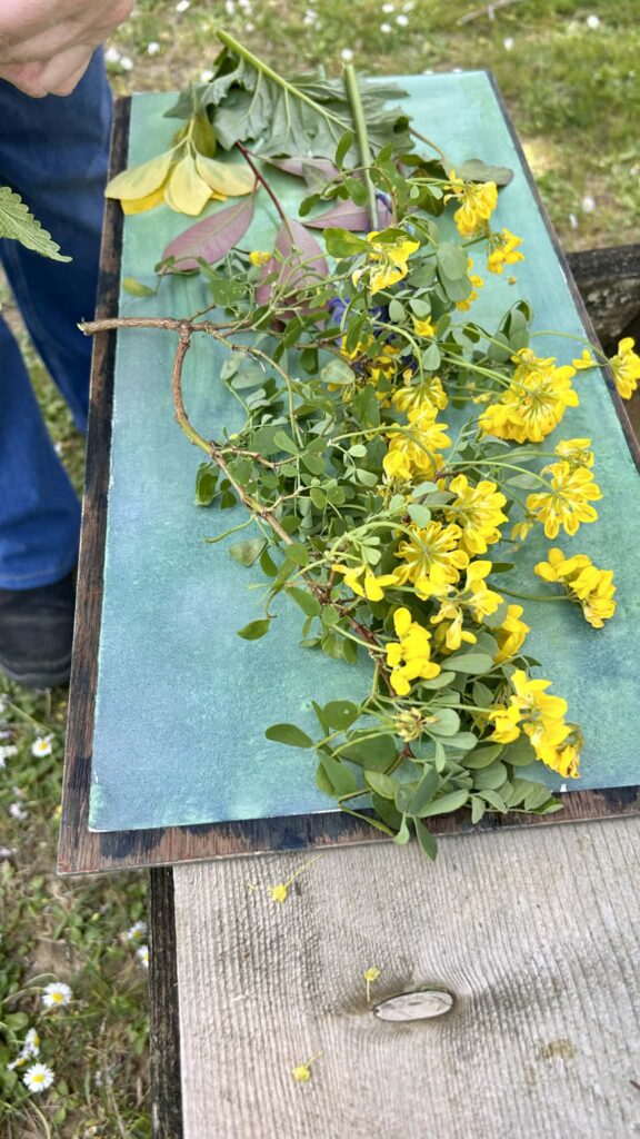 Merci à Marie-Christine Stéblin pour avoir ouvert ce lieu de partage, et une gratitude infinie à notre chère Agnès Clairand, artiste alchimique, de m’avoir initiée à l’univers mystique du cyanotype. Tout a commencé par un rituel : Avant même d’effleurer la moindre feuille, Agnès nous a offert un moment d’ancrage. Ce temps suspendu nous a permis de descendre en nous-mêmes, de sentir nos racines s’enfoncer dans la terre pour mieux s’ouvrir au ciel. C’est cet alignement qui a tout changé : nous n’étions plus de simples visiteuses dans le jardin, mais des êtres reliés, prêts à écouter le vivant. cueillir les plantes, sauvages ou domptées. Nous ne choisissons pas le végétal, c’est lui qui nous appelle. J’y ai déposé mes « plantes médecines », car au-delà de la forme, chaque feuille est un remède.